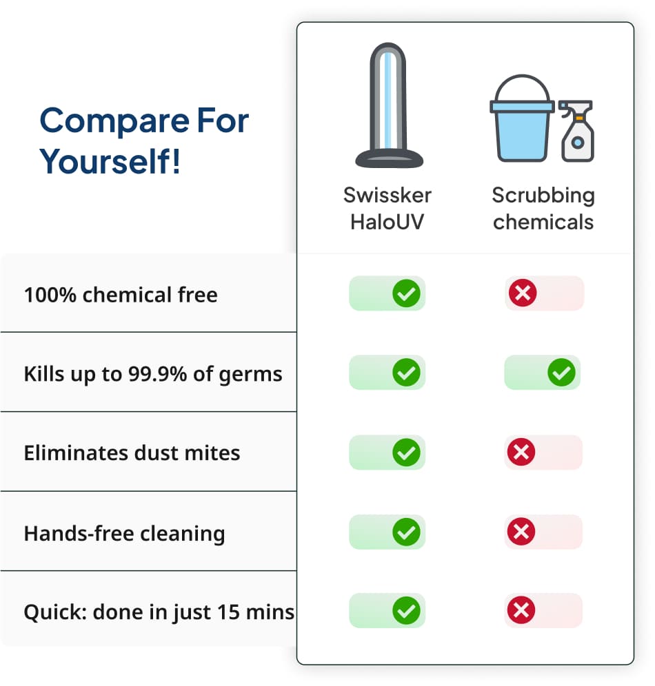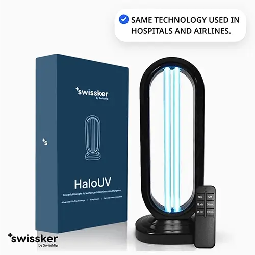 The Swissker HaloUV uses natural UV light and ozone to refresh any room. UV light and ozone are shown to be effective tools against pests – and now you can use it at home WITHOUT toxic chemicals!